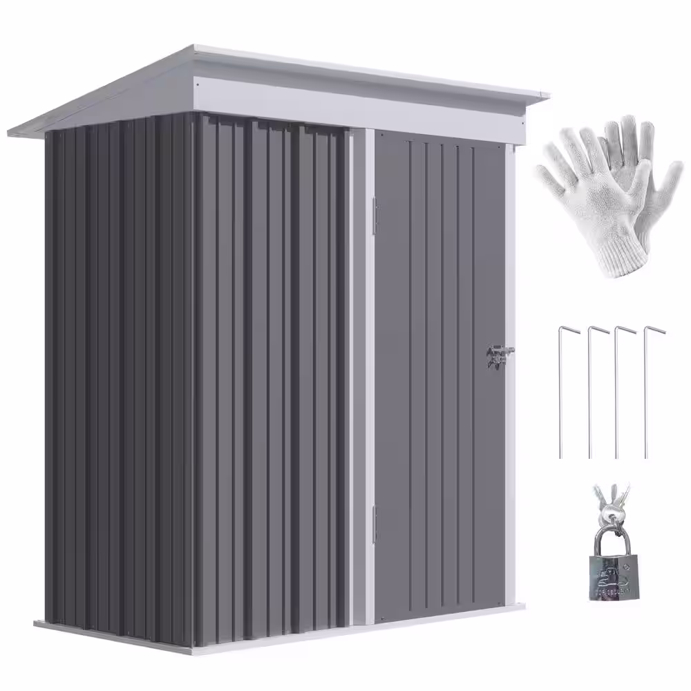 Outsunny 5 ft. W x 3 ft. D Metal Shed with Floor, Adjustable Shelf, Lock and Gloves (15 sq. ft.)