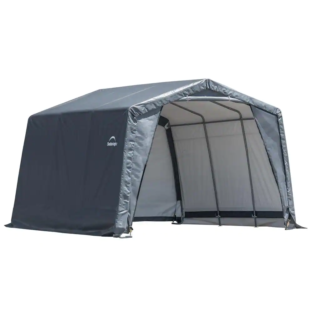 ShelterLogic 12 ft. W x 9.5 ft. H x 12 ft. D Grey Peak Style Shed-in-a-Box XT with Steel Frame and Patented Stabilizers