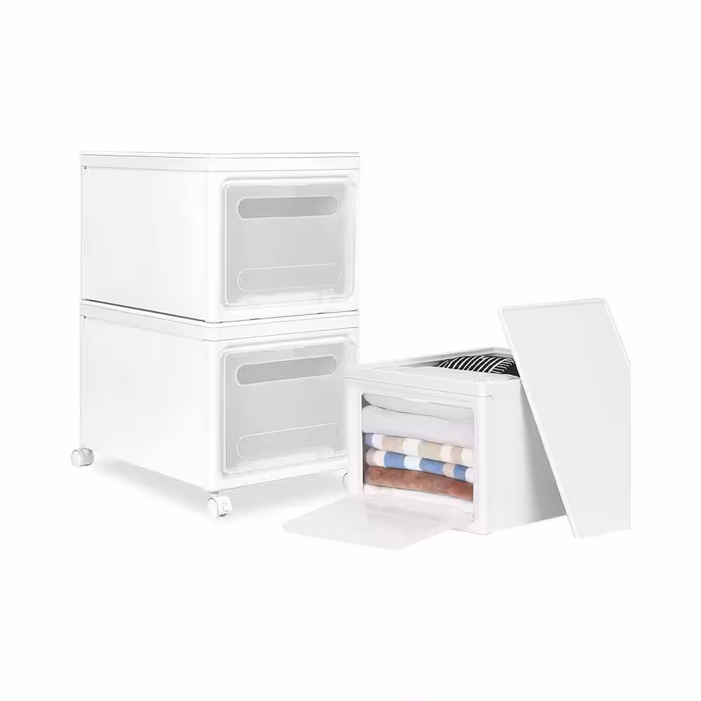 None 8 Gal. Plastic Storage Box with Wheels in White
