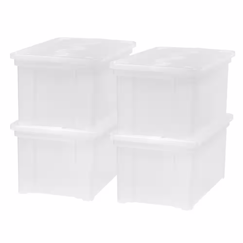 IRIS 47 Qt. Hinged Lid File Storage Bin Clear (4-Pack)