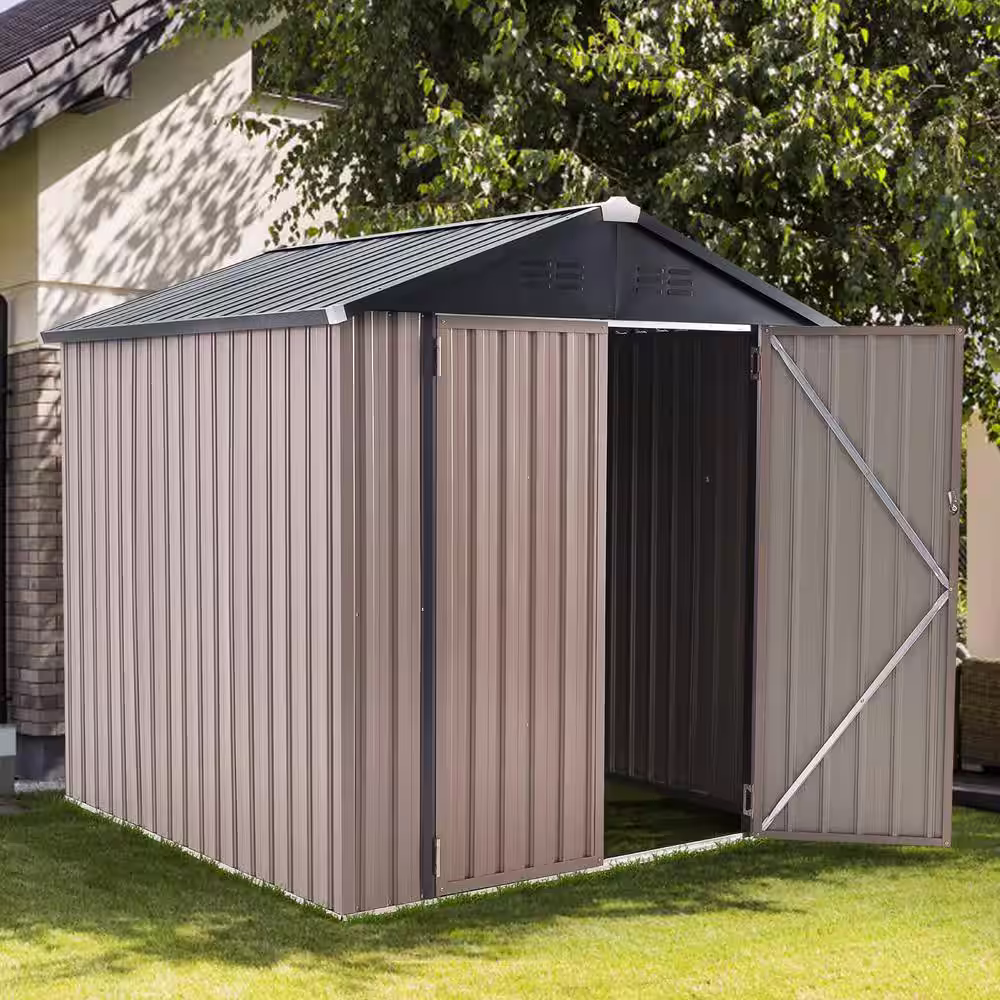 None 8 ft. W x 6 ft. D Outdoor Storage Brown Metal Shed with Sloping Roof (45 sq. ft.)
