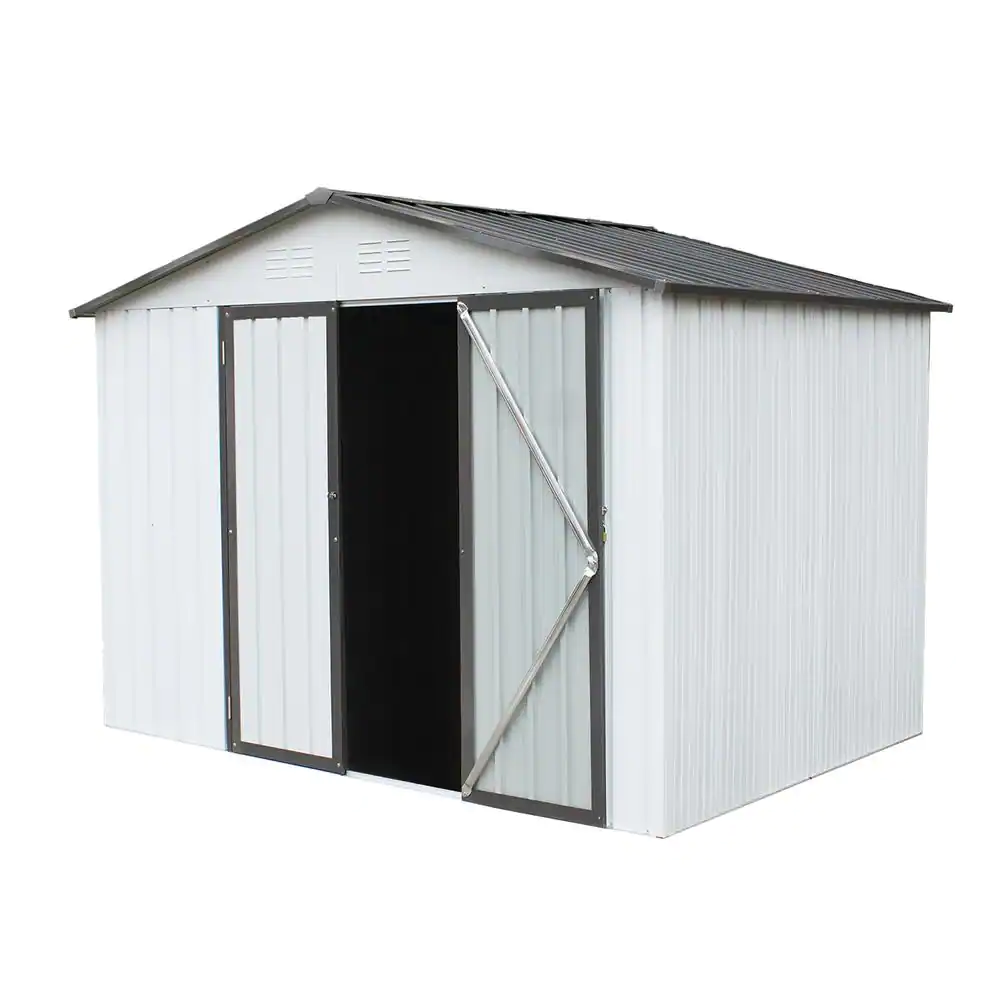 None 8 ft. W x 6 ft. D Galvanized Steel Shed with Lockable Double Doors, Tool Storage Garden Shed