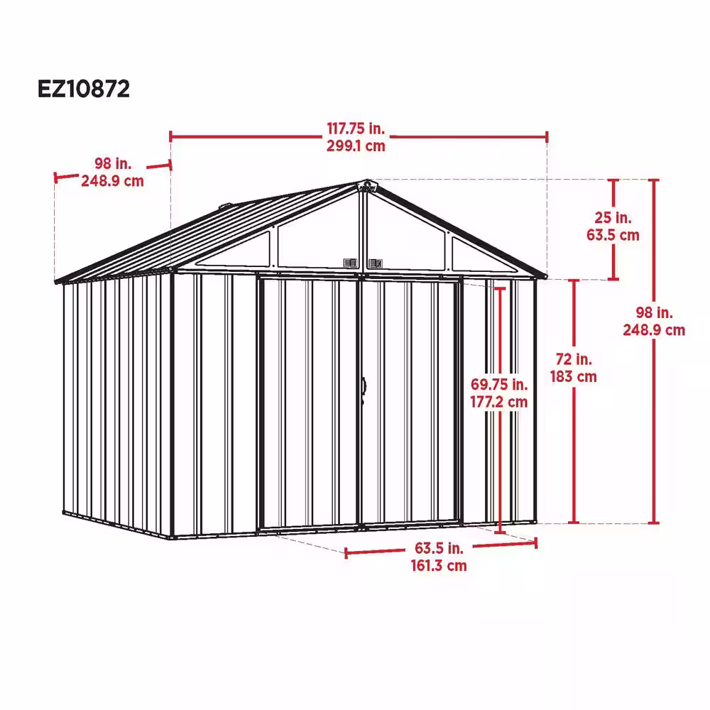 Arrow 10 ft. W x 8 ft. H x 8 ft. D EZEE Extra-High Galvanized Steel Gable Shed in Charcoal/Cream with Snap-IT Quick Assembly