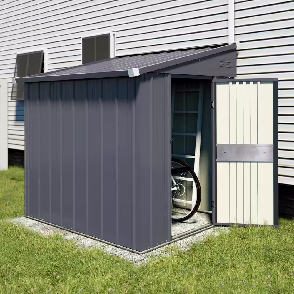 VEIKOUS 4 ft. W x 8 ft. D Metal Storage Lean-to Shed 33 sq. ft. in Gray