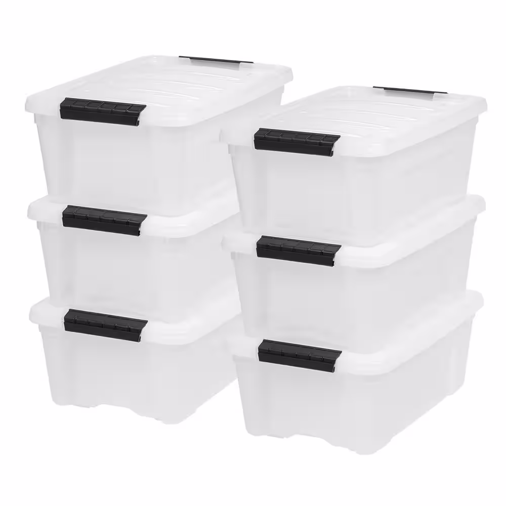 IRIS 12 qt. Stack & Pull Box in Pearl (6-Pack)