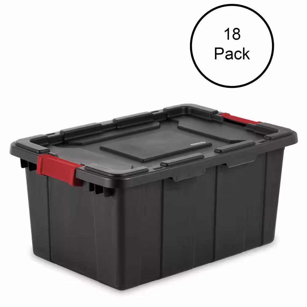 Sterilite 15-Gal. Durable Rugged Industrial Tote with Red Latches in Black (18-Pack)