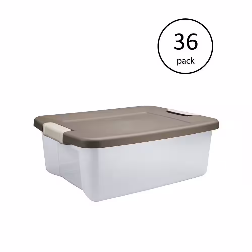 Sterilite 25 qt. Shelf Tote Driftwood Lid Clear Base with Platinum Latches(36-Pack)