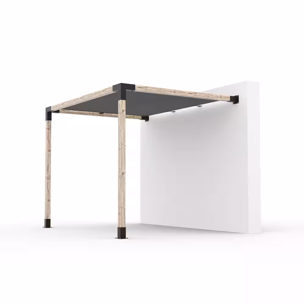 TOJA GRID 8 ft. in. x 10 ft. in. Wall Mount Pergola Kit with Graphite Shade Sail, for 4x4 Wood