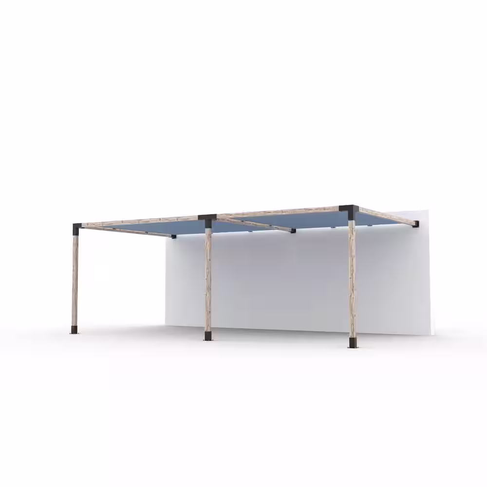 TOJA GRID 8 ft. L x 18 ft. W Double Wall Mount Pergola Kit with 2 Denim Shade Sails, 4x4 Wood