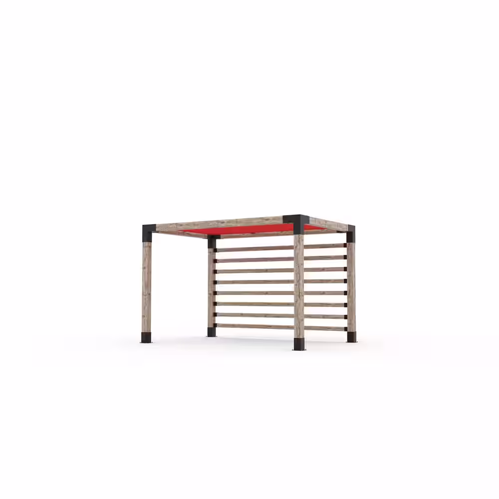 TOJA GRID 8 ft. L x 8 ft. W Pergola Kit with 4x4 KNECT Post Wall and Crimson Shade Sail, 4x4 Wood Posts