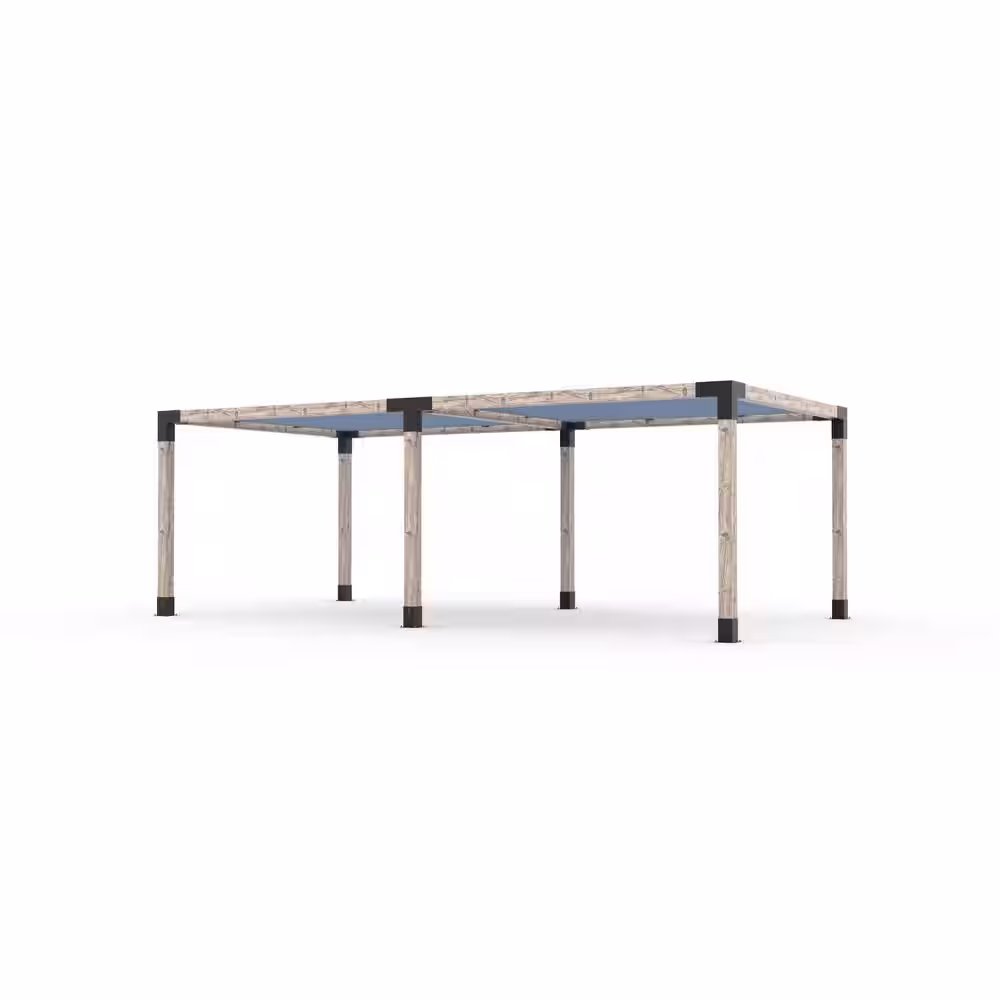 TOJA GRID 12 ft. L x 24 ft. W Double Pergola Kit with 2 Denim Shade Sails, for 6x6 Wood