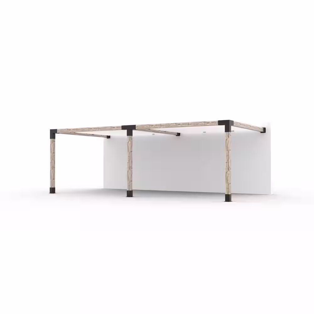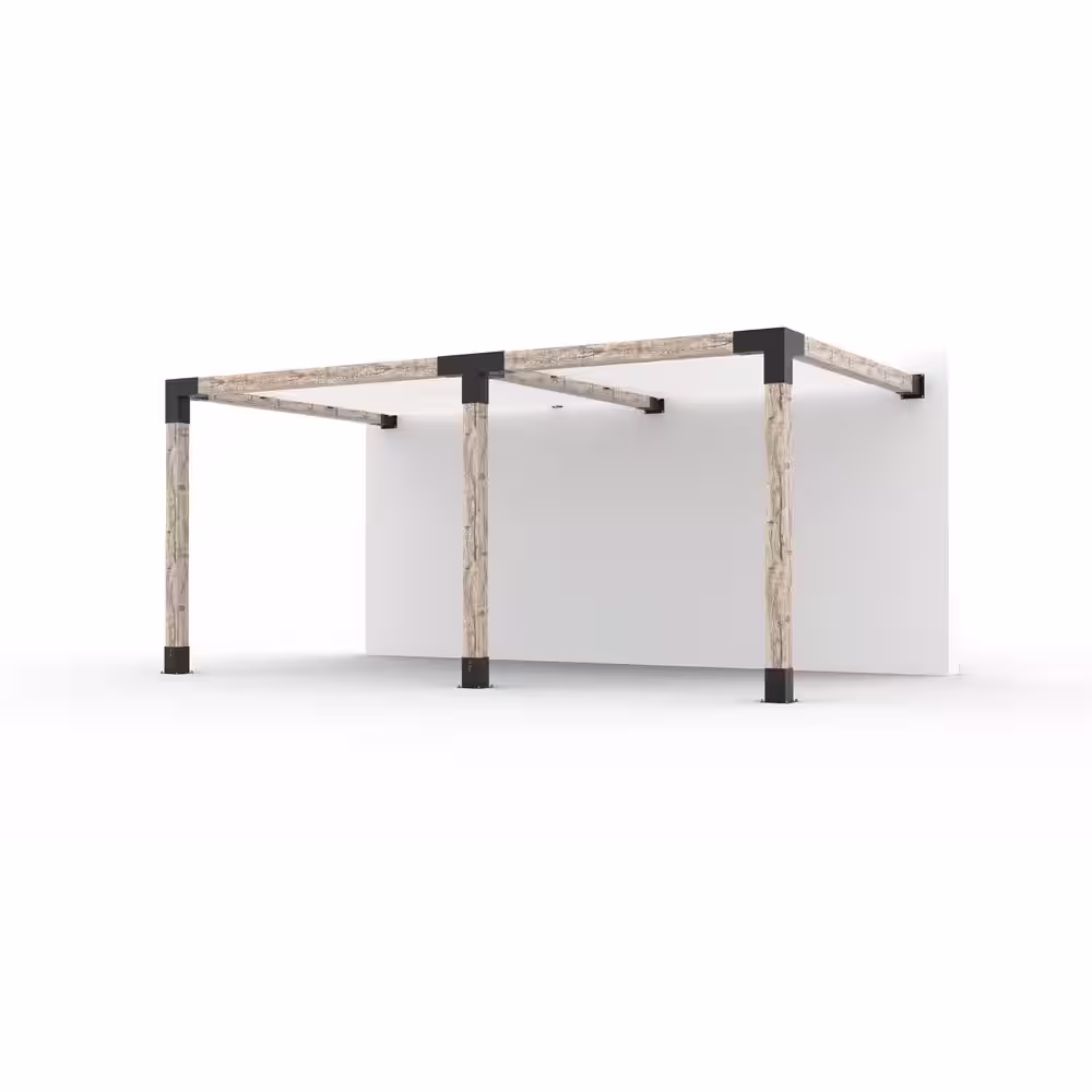 TOJA GRID 10 ft. L x 18 ft. W Double Wall Mount Pergola Kit with 2 White Shade Sails, 6x6 Wood
