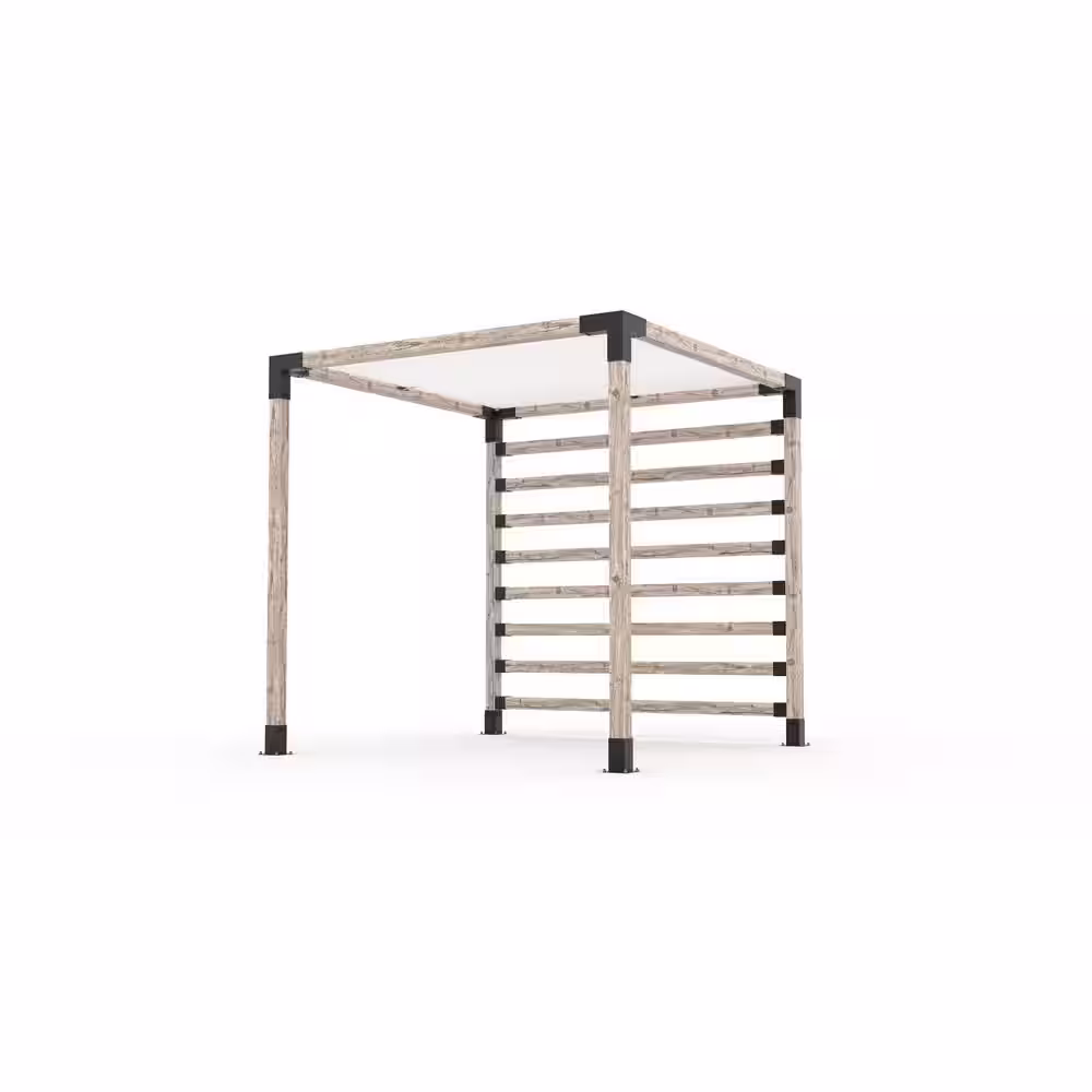 TOJA GRID 8 ft. L x 8 ft. W Pergola Kit with 4x4 KNECT Post Wall and White Shade Sail, 4x4 Wood Posts
