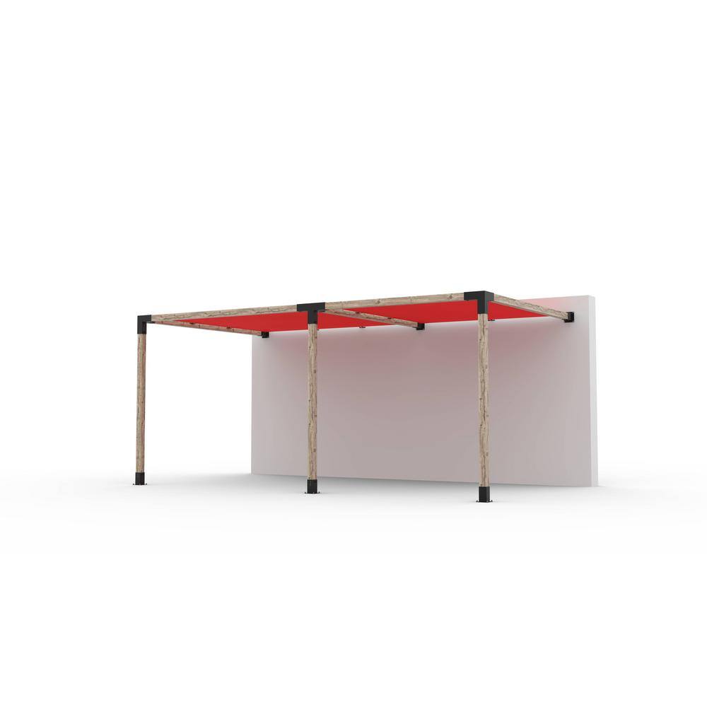 TOJA GRID 10 ft. L x 18 ft. W Double Wall Mount Pergola Kit with 2 Crimson Shade Sails, 4x4 Wood