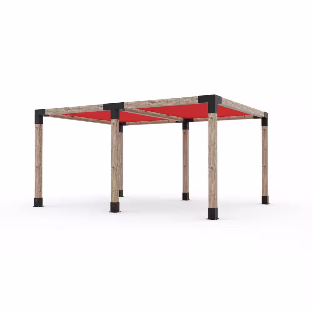 TOJA GRID 12 ft. L x 16 ft. W Double Pergola Kit with 2 Crimson Shade Sails, for 6x6 Wood