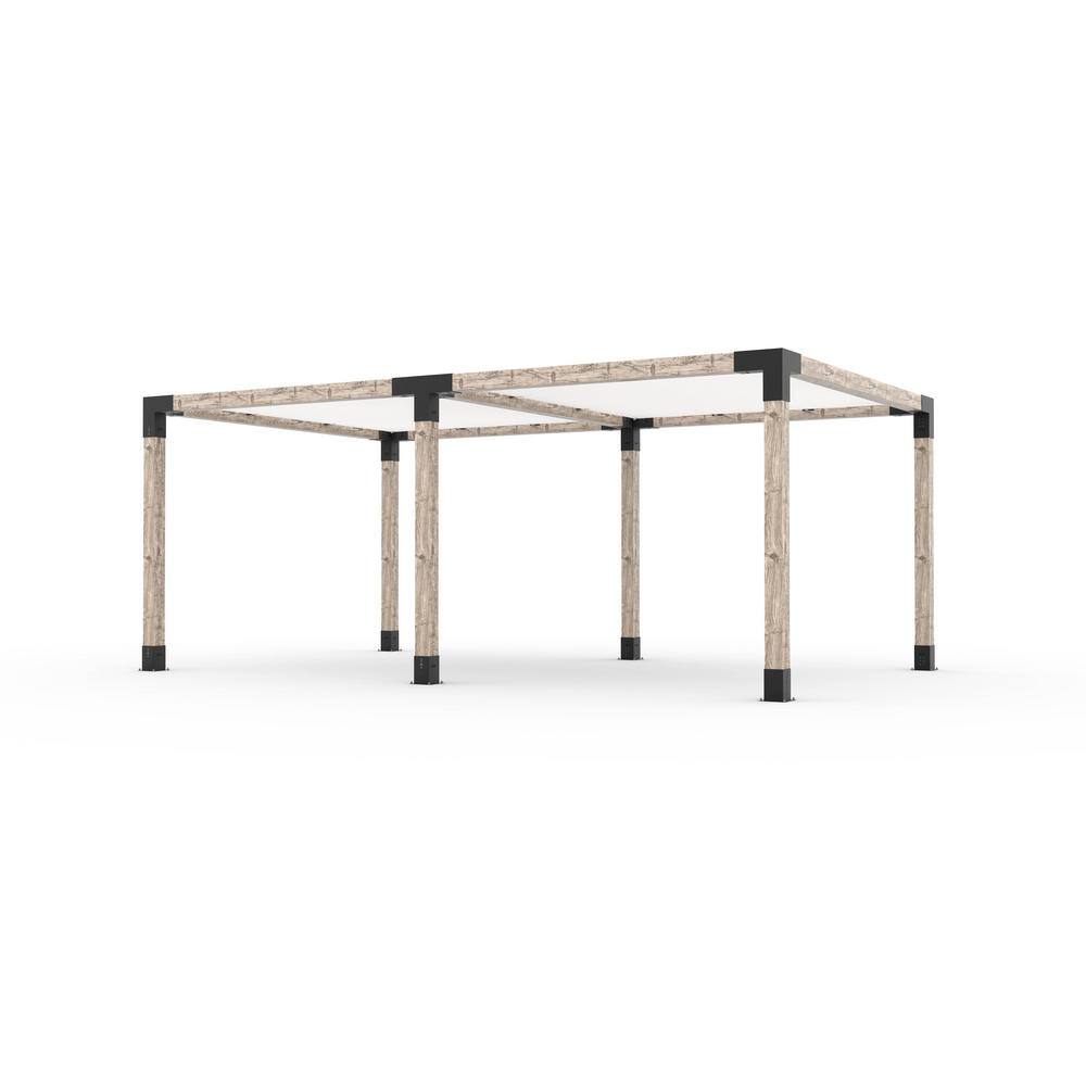 TOJA GRID 12 ft. L x 20 ft. W Double Pergola Kit with 2 White Shade Sails, for 6x6 Wood