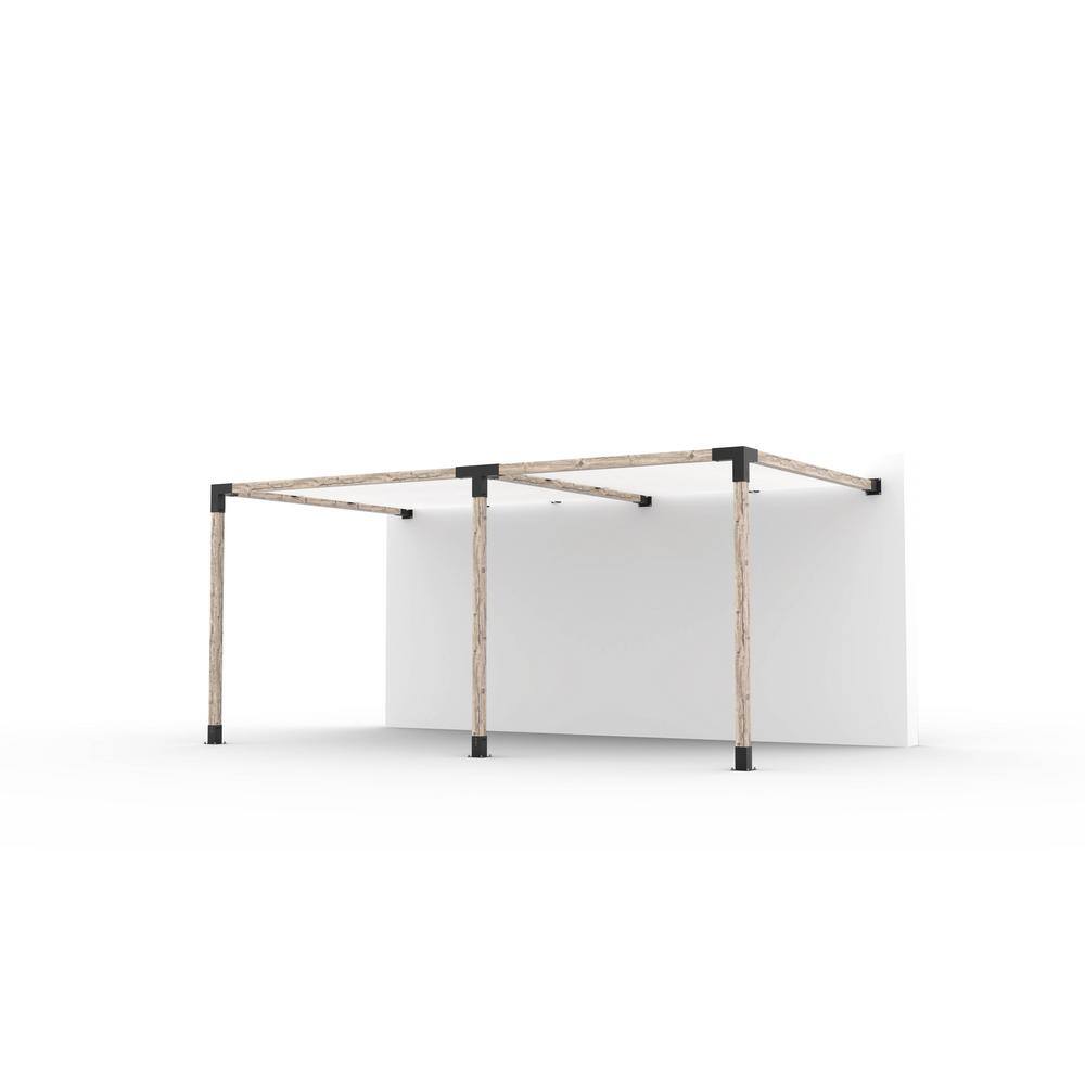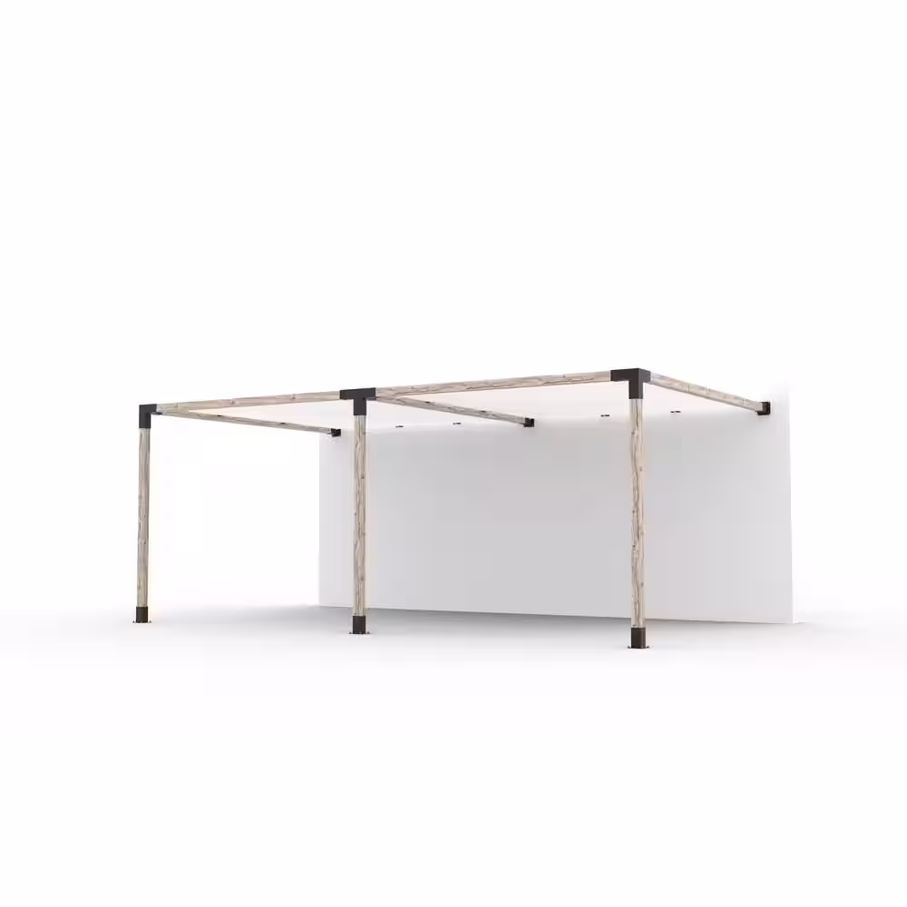 TOJA GRID 10 ft. L x 18 ft. W Double Wall Mount Pergola Kit with 2 White Shade Sails, 4x4 Wood