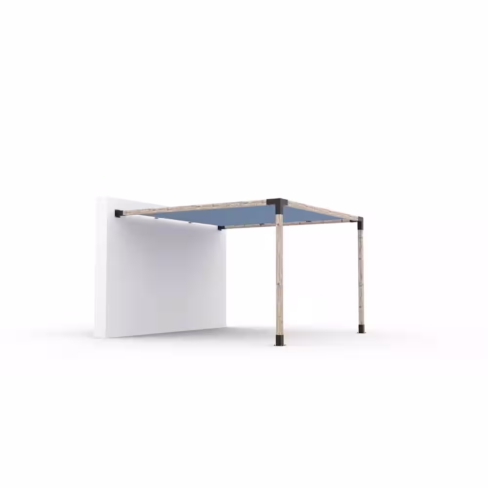 TOJA GRID 12 ft. L x 12 ft. W Wall Mount Pergola Kit with Denim Shade Sail, for 4x4 Wood