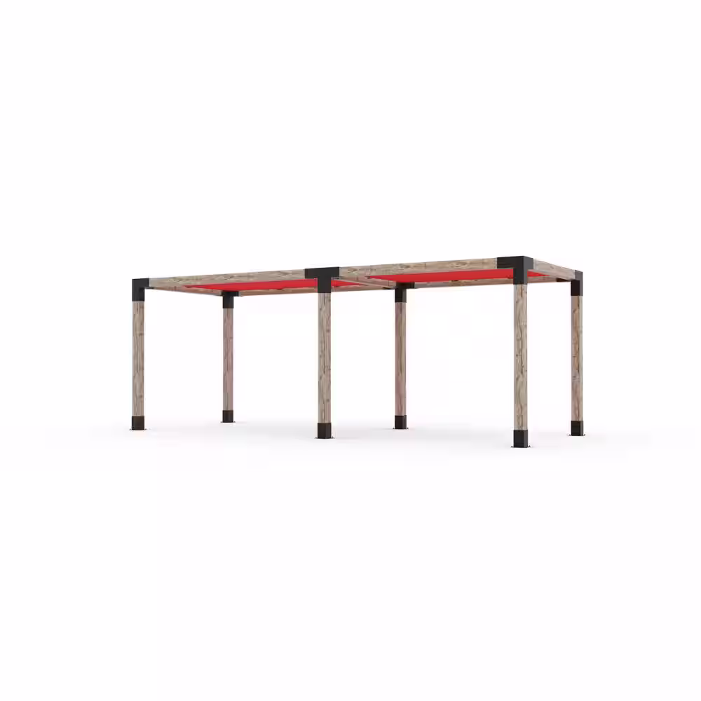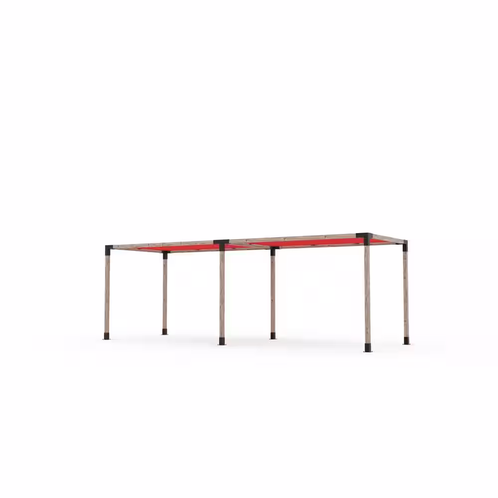 TOJA GRID 8 ft. L x 24 ft. W Double Pergola Kit with 2 Crimson Shade Sails, for 4x4 Wood
