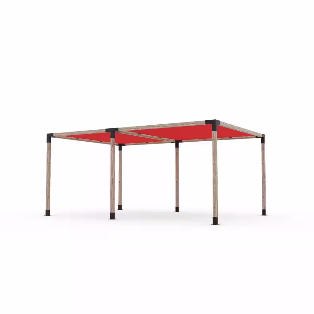 TOJA GRID 10 ft. L x 18 ft. W Double Pergola Kit with 2 Crimson Shade Sails, for 4x4 Wood
