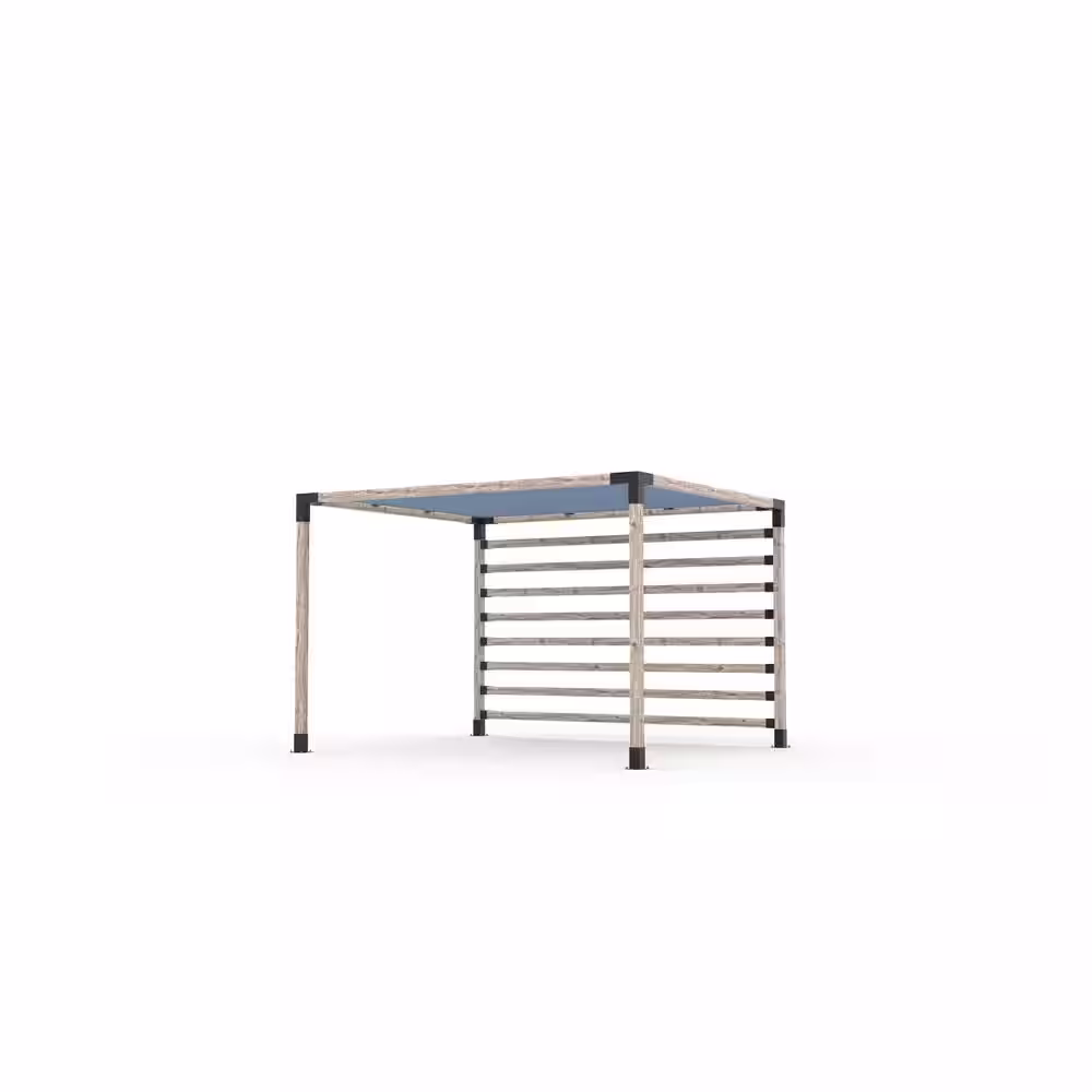 TOJA GRID 10 ft. L x 12 ft. W Pergola Kit with 4x4 KNECT Post Wall and Denim Shade Sail, 4x4 Wood Posts