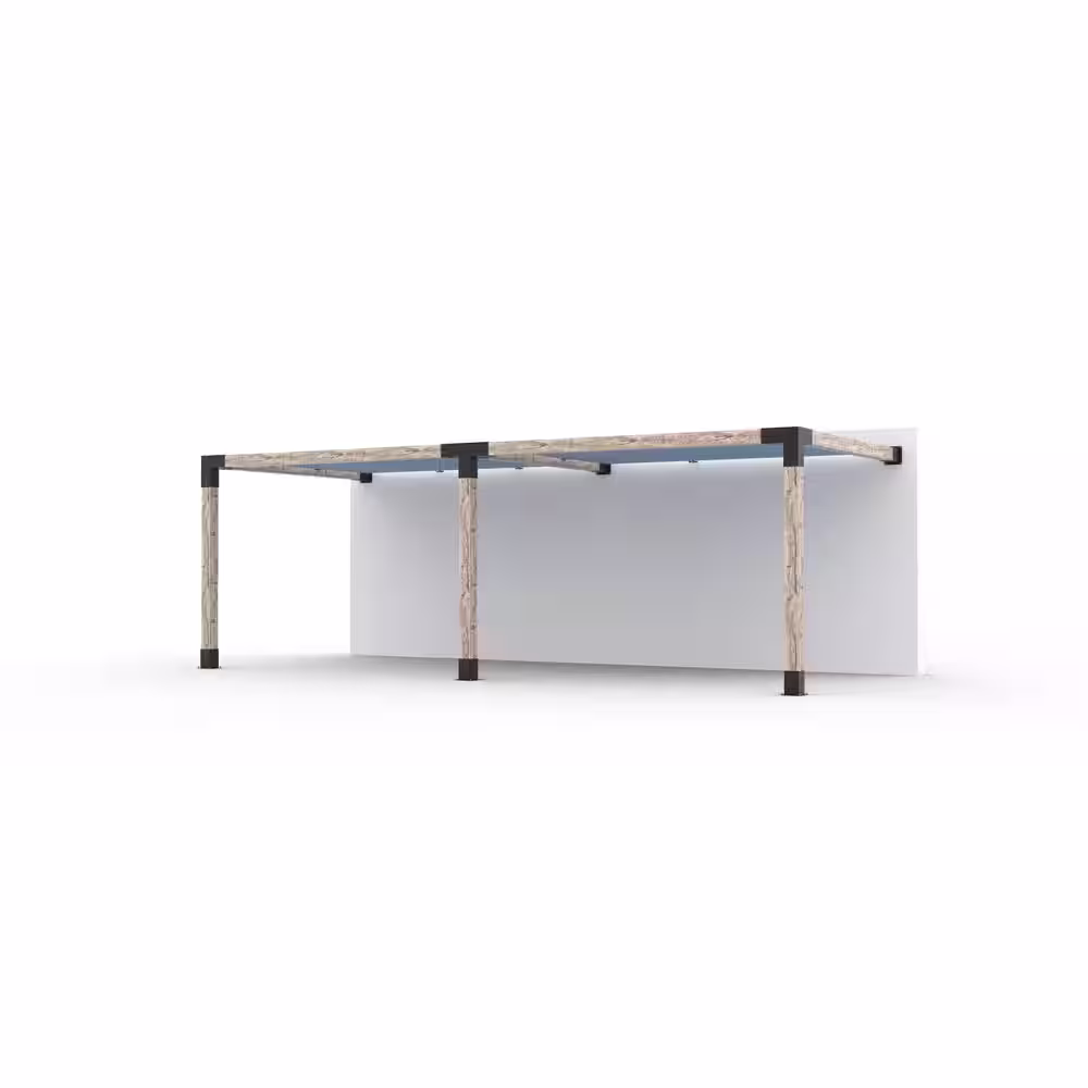 TOJA GRID 10 ft. L x 24 ft. W Double Wall Mount Pergola Kit with 2 Denim Shade Sails, 6x6 Wood
