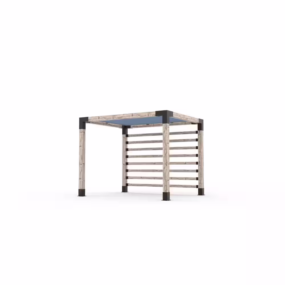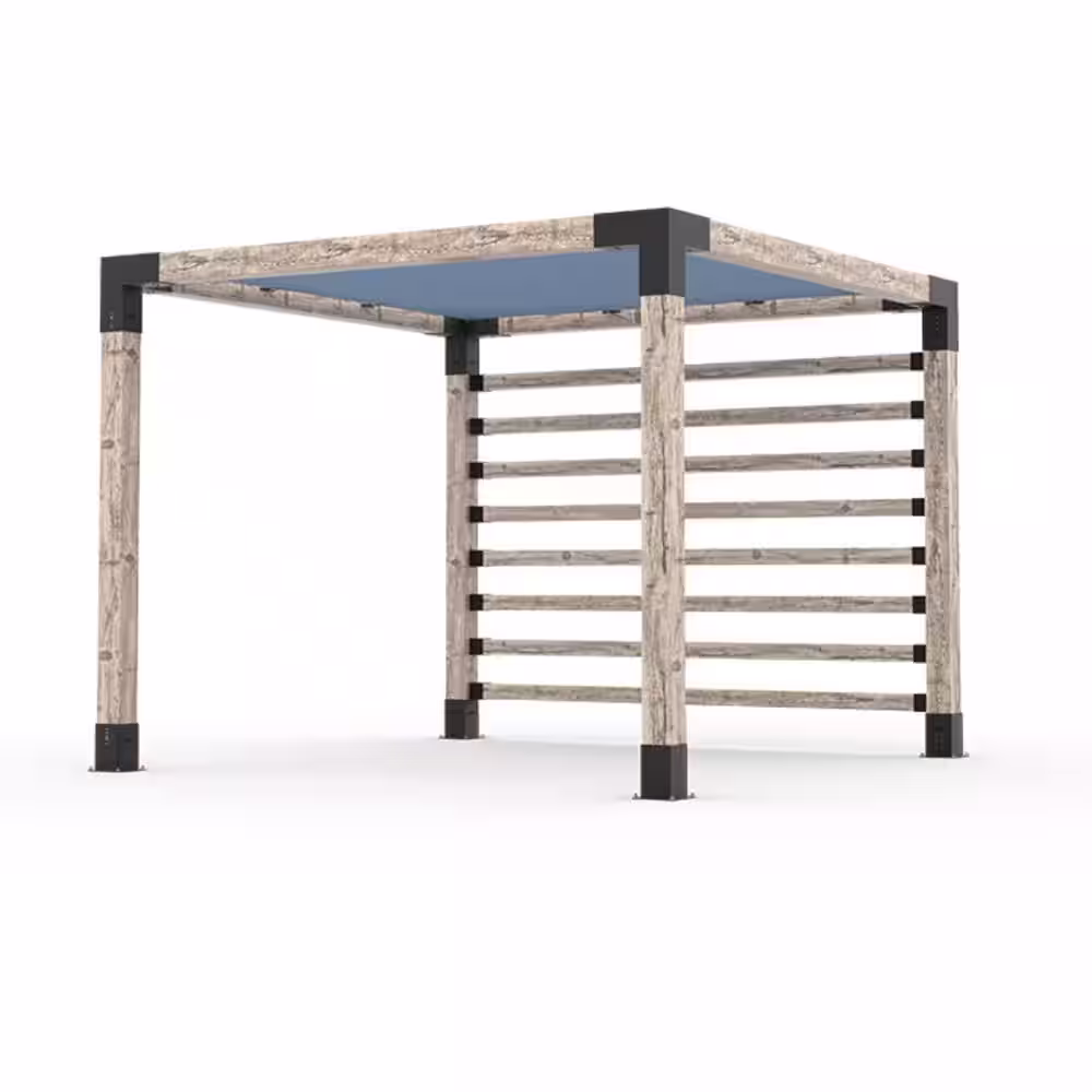 TOJA GRID 10 ft. L x 10 ft. W Pergola Kit with 4x4 KNECT Post Wall and Denim Shade Sail, 4x4 Wood Posts