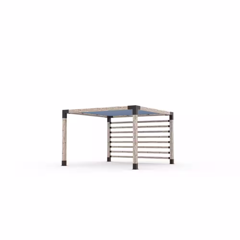 TOJA GRID 12 ft. L x 12 ft. W Pergola with 4x4 KNECT Post Wall and Denim Shade Sail for 6x6 Wood Posts