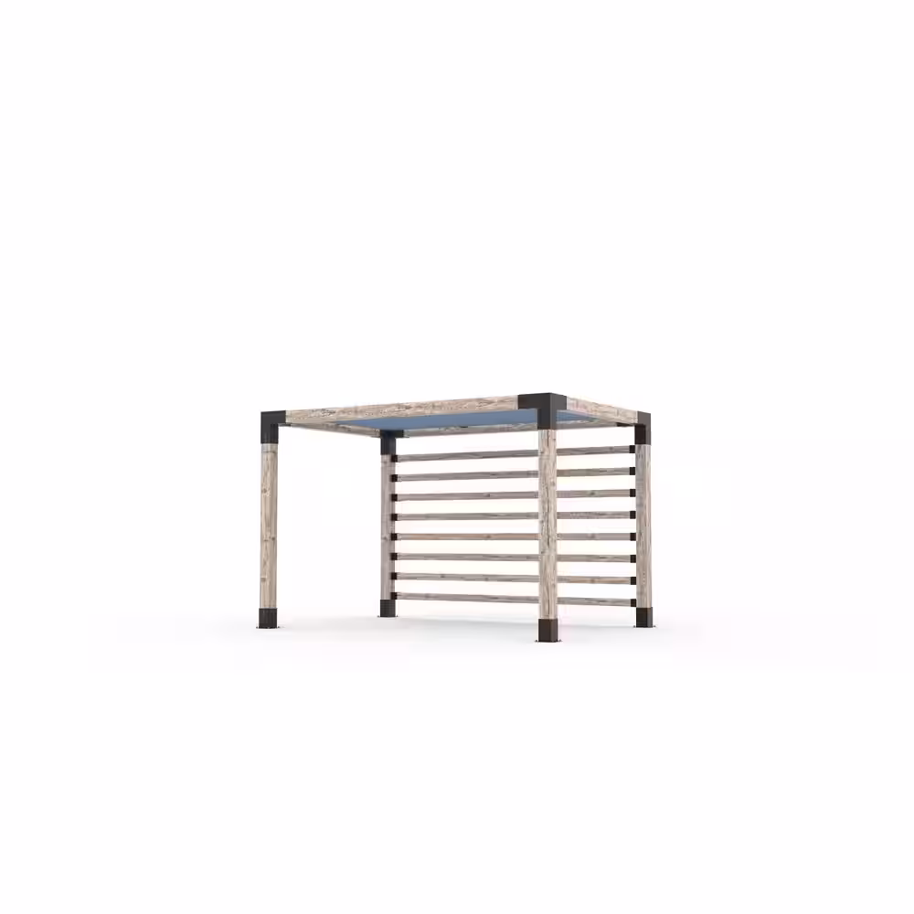 TOJA GRID 10 ft. L x 12 ft. W Pergola Kit with 4x4 KNECT Post Wall and Denim Shade Sail for 6x6 Wood Posts