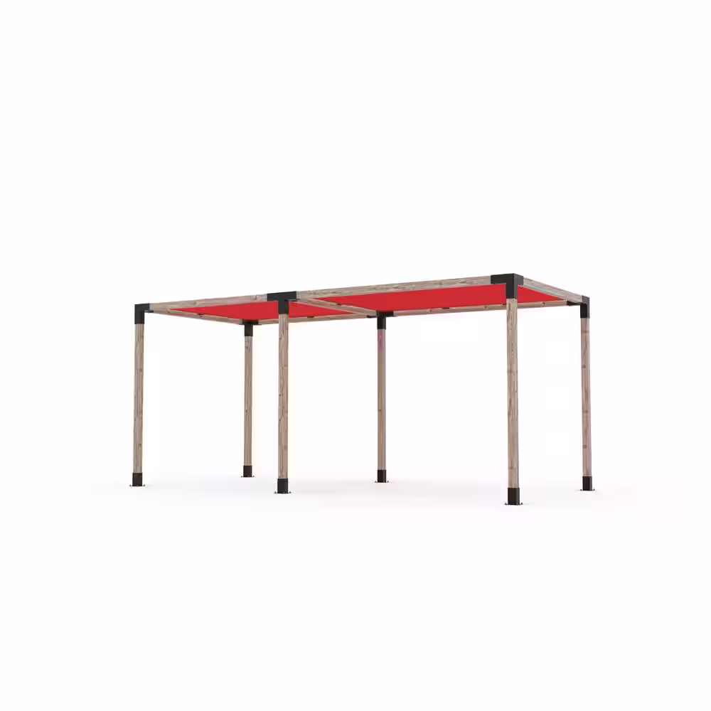 TOJA GRID 8 ft. L x 18 ft. W Double Pergola Kit with 2 Crimson Shade Sails, for 4x4 Wood