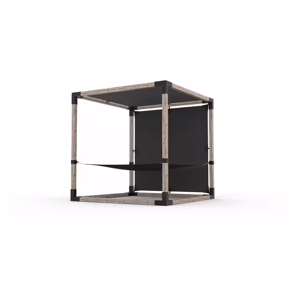 TOJA GRID 8 ft. x 8 ft. 2-Person Black Hammock Pergola Kit with 2 Graphite Shade Sail for 4 in. x 4 in. Wood Posts