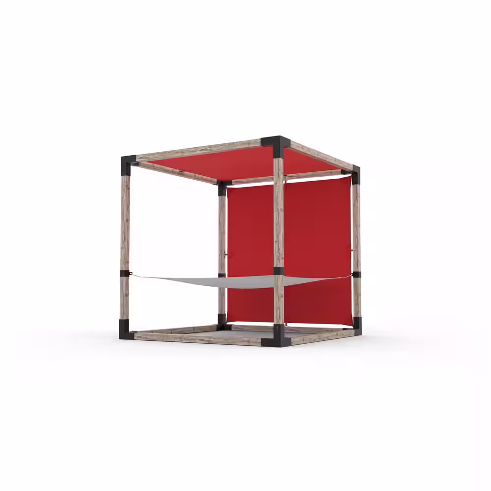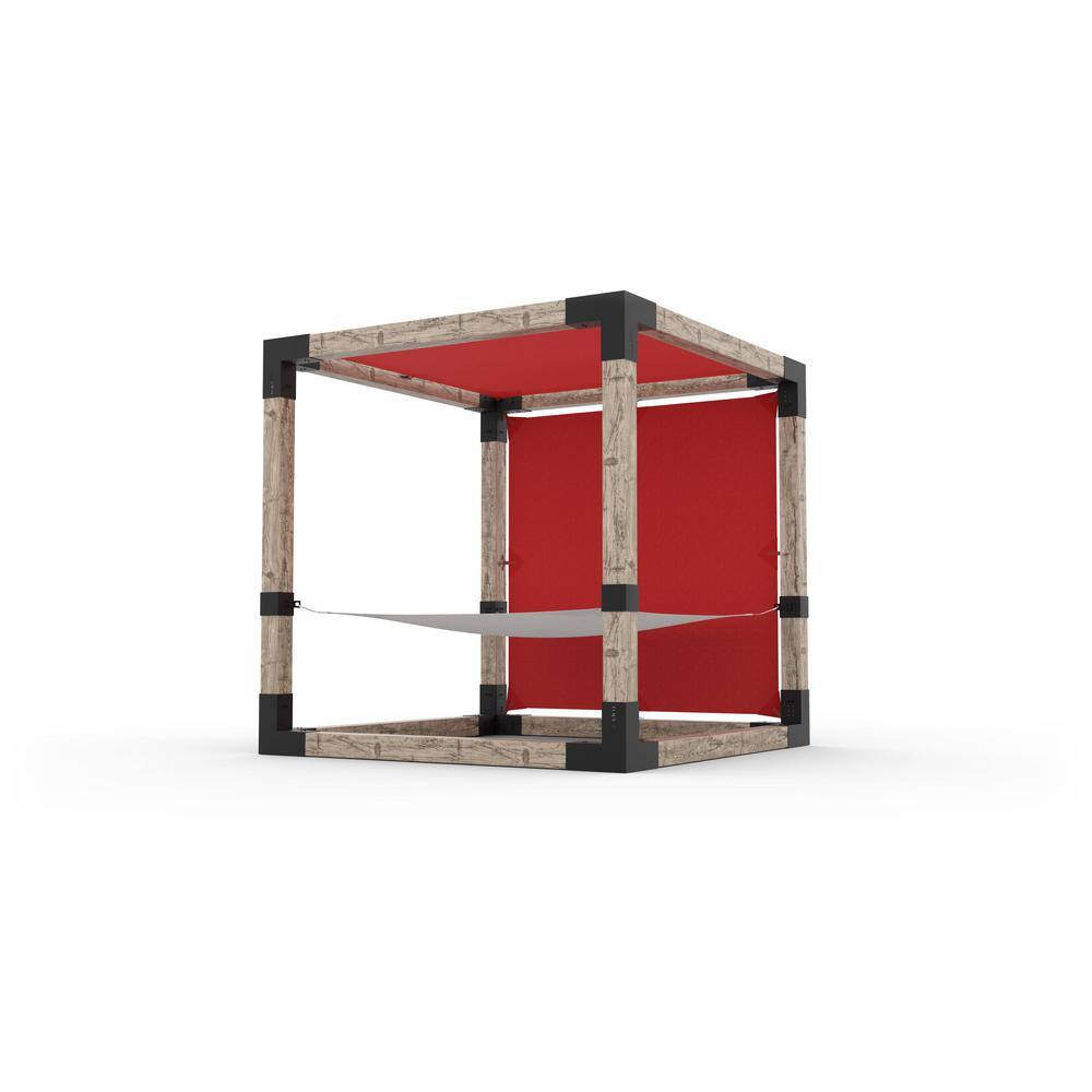 TOJA GRID 8 ft. x 8 ft. 2-Person White Hammock Pergola Kit with 2 Crimson Shade Sail for 4 in. x 4 in. Wood Posts