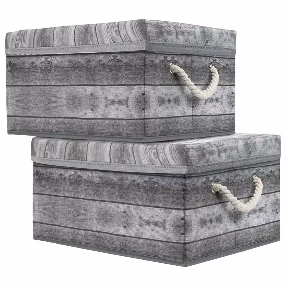 Sorbus 16.62 in. L x 8 in. W x 12.25 in. H Gray Rustic Collapsible Fabric Storage Bin with with Lid and Carry Handles Set of 2