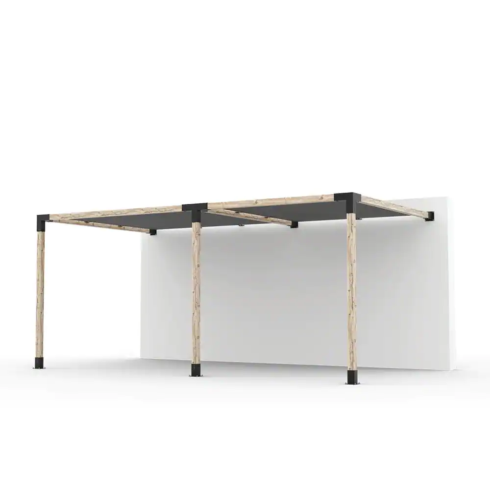TOJA GRID 10 ft. x 18 ft. Double Wall Mount Pergola Kit with 2 Graphite Shade Sails, for 4x4 Wood