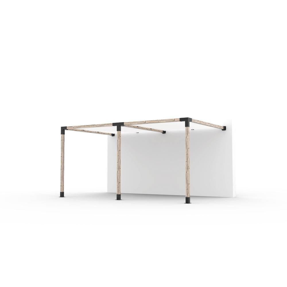 TOJA GRID 10 ft. L x 16 ft. W Double Wall Mount Pergola Kit with 2 White Shade Sails, 4x4 Wood