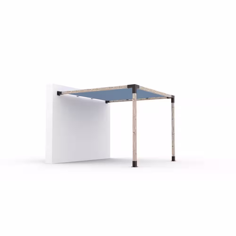 TOJA GRID 10 ft. x 10 ft. Wall Mount Pergola Kit with Denim Shade Sail, for 4x4 Wood