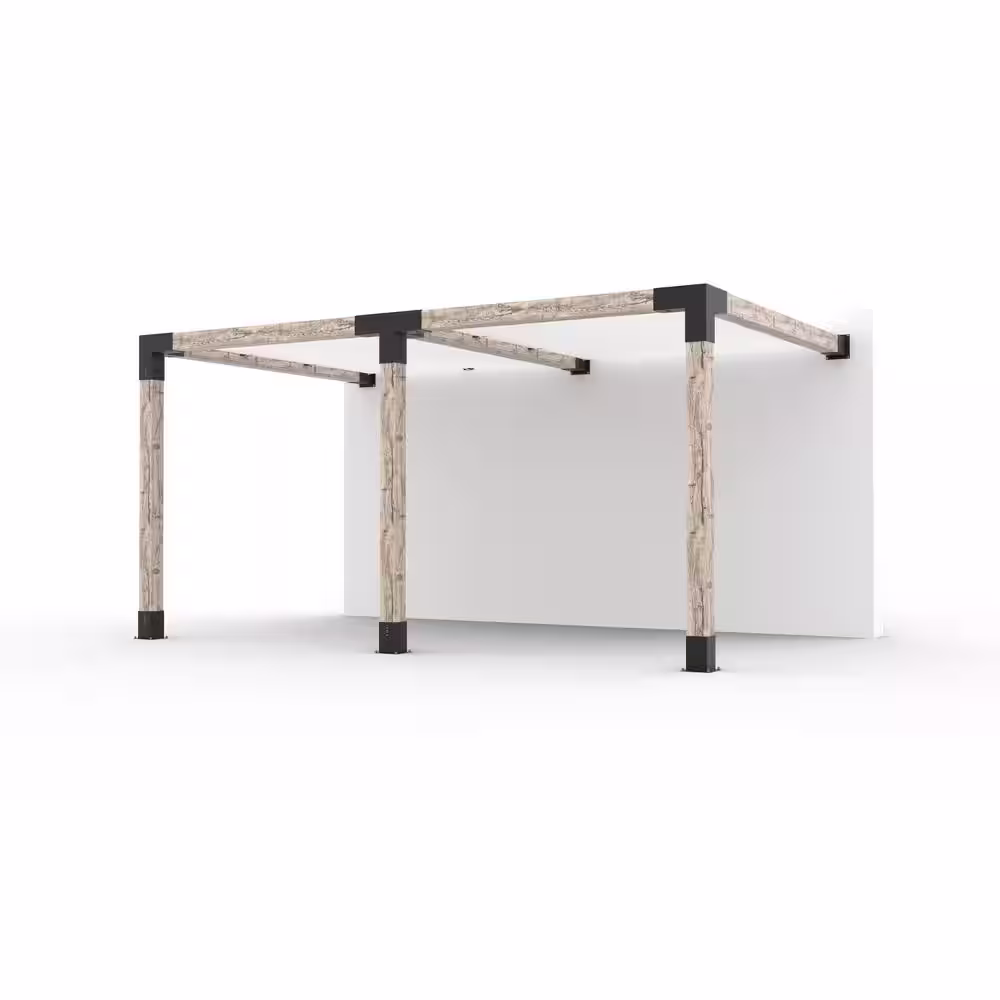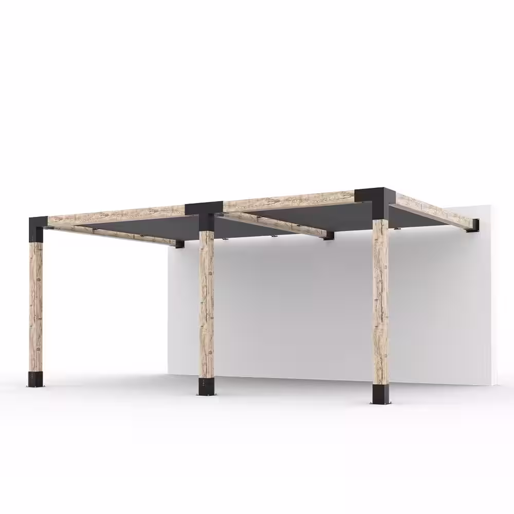 TOJA GRID 12 ft. x 18 ft. Double Wall Mount Pergola Kit with 2 Graphite Shade Sails, 6x6 Wood