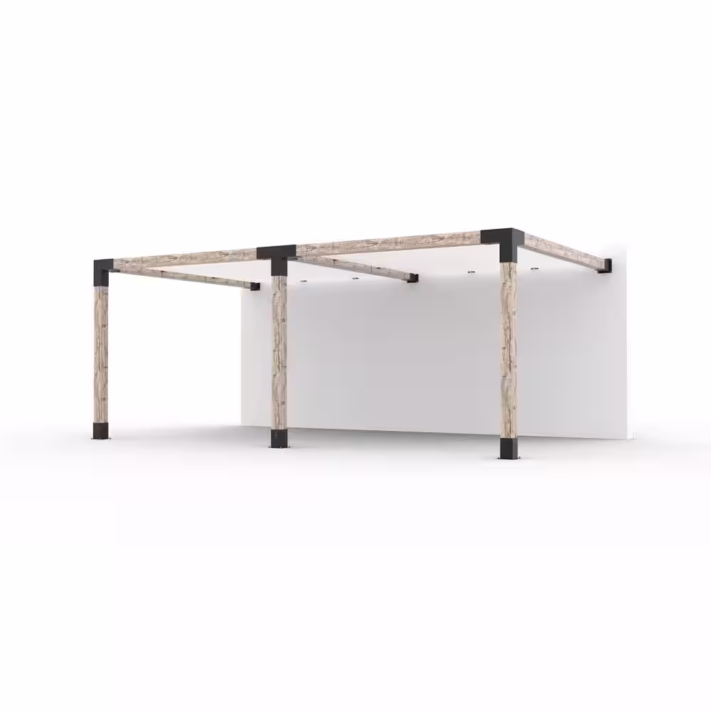 TOJA GRID 10 ft. L x 16 ft. W Double Wall Mount Pergola Kit with 2 White Shade Sails, 6x6 Wood