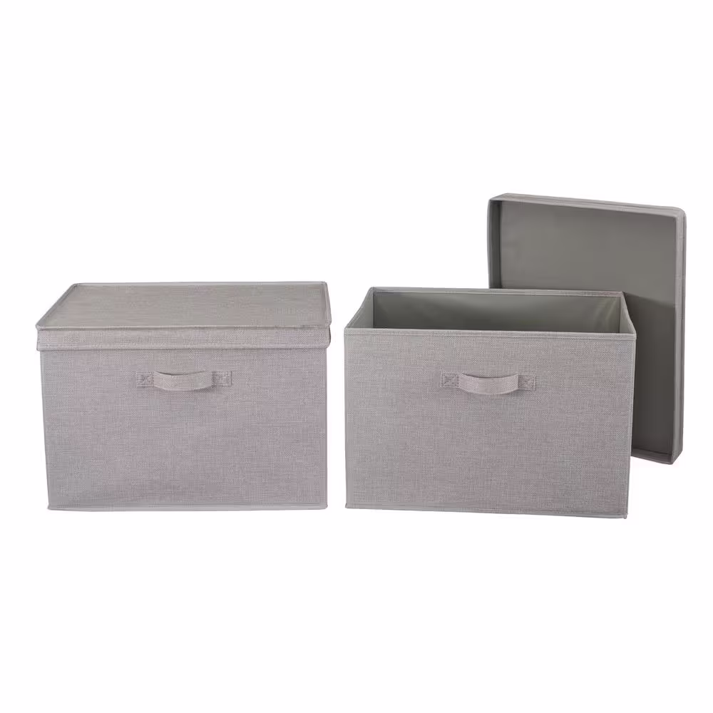 None 40 qt. Fabric Collapsible Storage Bin with Lid Gray (2-Pack)