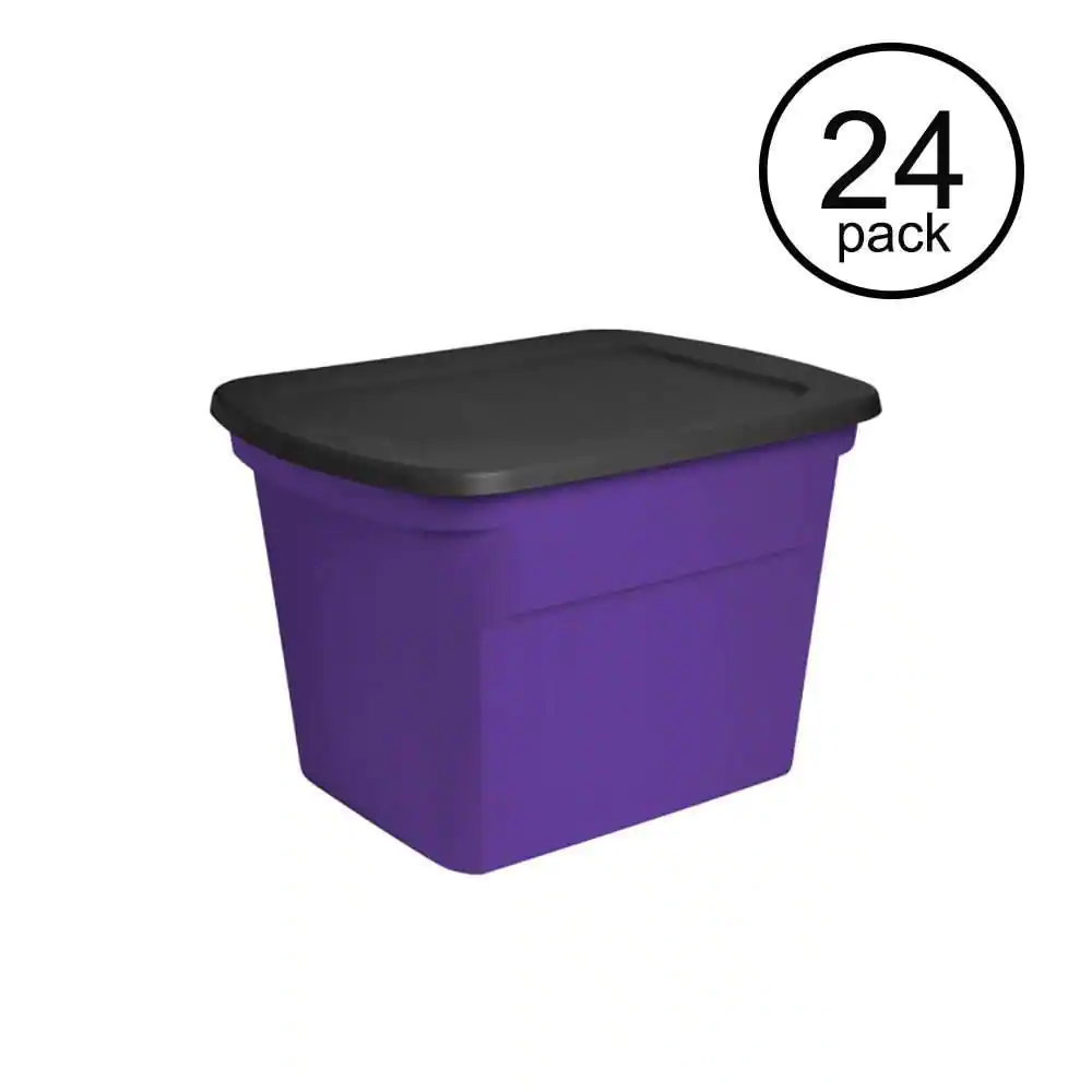 Sterilite Large 18 Gallon Opaque Plastic Storage Tote Bin w/Lid, Purple 24 Ct.
