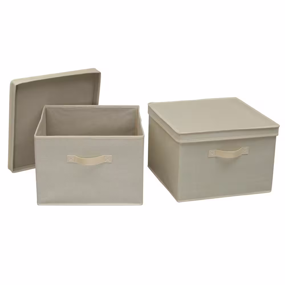 HOUSEHOLD ESSENTIALS 9.5 Gal. Square Storage Box with Lid in Cream