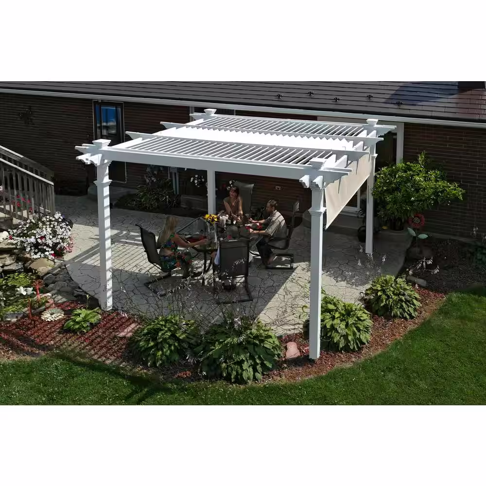 VITA 192"L x 144"W x 107"H Vinyl Valencia Attached Pergola, White, VA42086