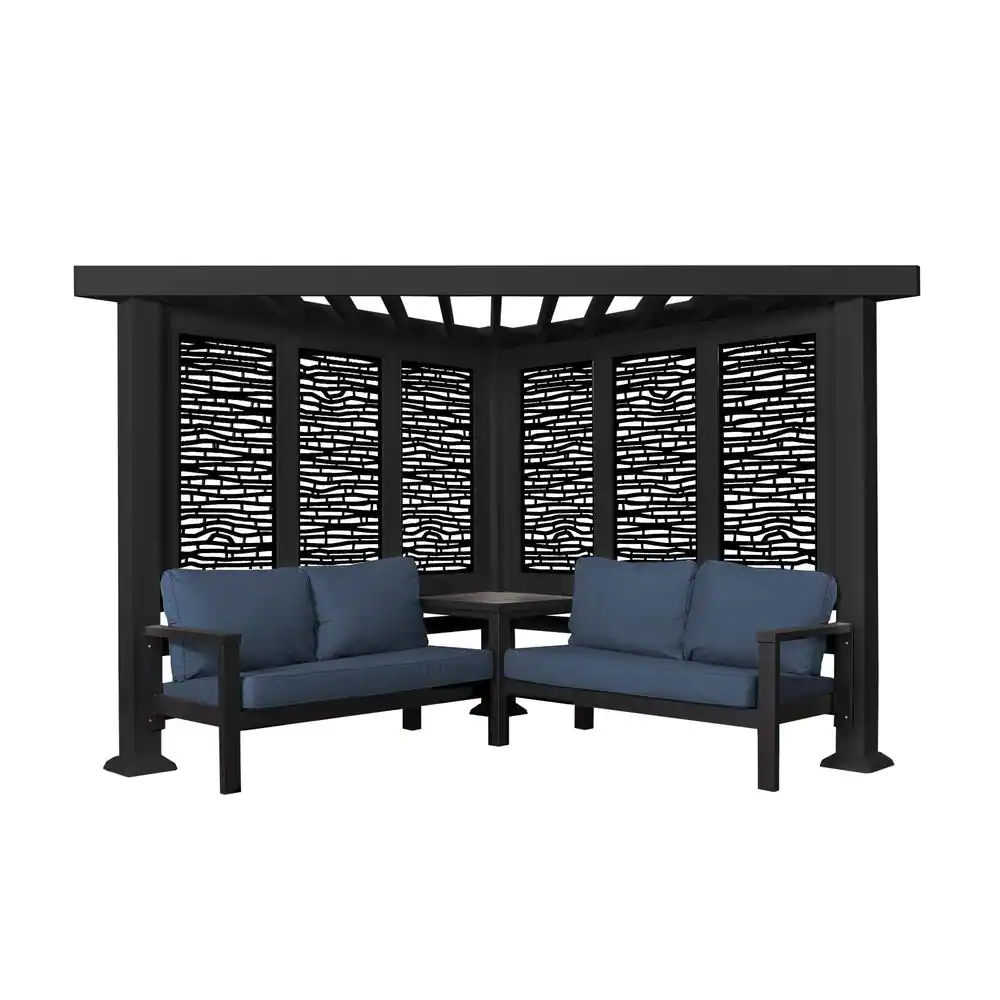 Backyard Discovery Glendale 8 ft. x 8 ft. Black Steel Modern Cabana Pergola with Conversation Seating in Indigo