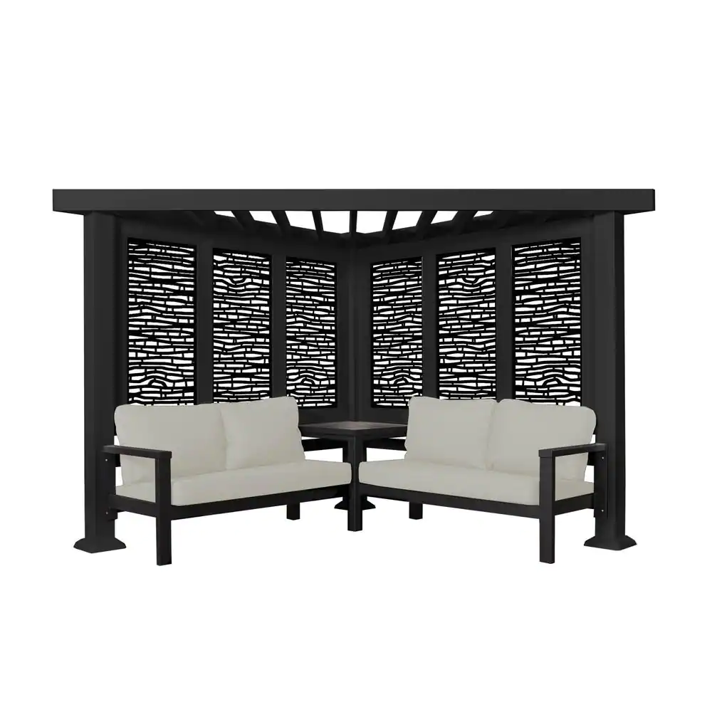 Backyard Discovery Glendale 8 ft. x 8 ft. Black Steel Modern Cabana Pergola with Conversation Seating in Pumice