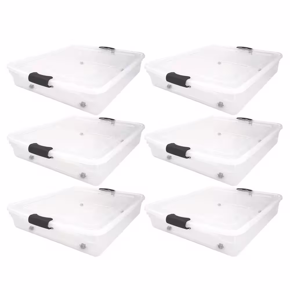 HOMZ 56 qt. Full/Queen Underbed Clear Plastic Latching Storage Container, 6-Pack