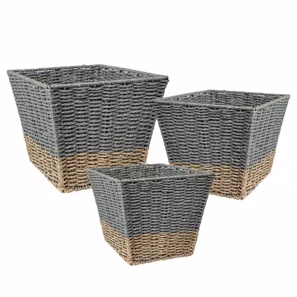 Honey-Can-Do 16.5 Gal. Seagrass Storage Baskets in Blue and Grey (3-Pack)