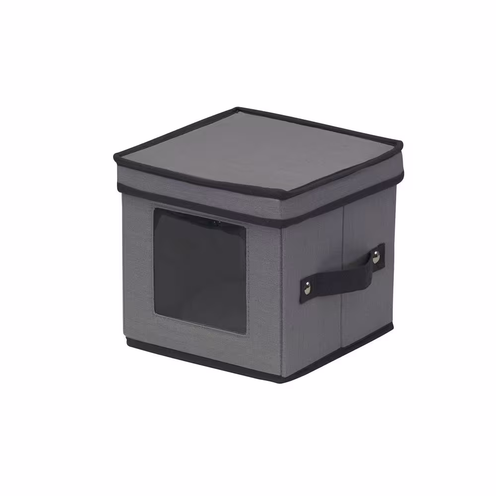HOUSEHOLD ESSENTIALS China Plate Storage Box Holds 12 Dessert Plates or Bowls in Gray