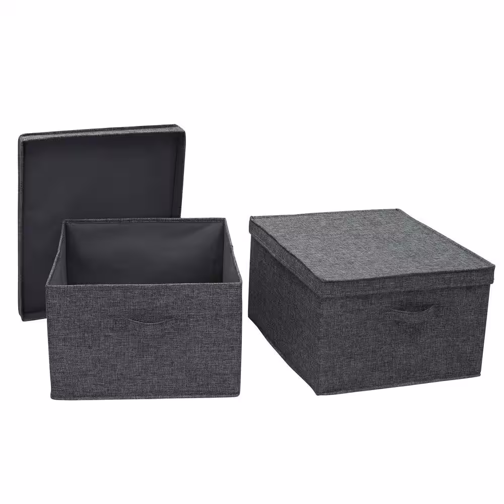 HOUSEHOLD ESSENTIALS 13 Gal. JumboStorage Box in Graphite Linen (2-Pack)