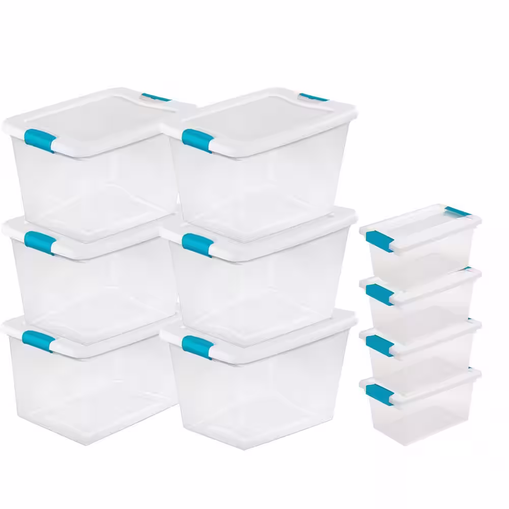 Sterilite 64-Quart Latching Storage Tote Box (6 Pack) + Medium Clip Box (4 Pack)