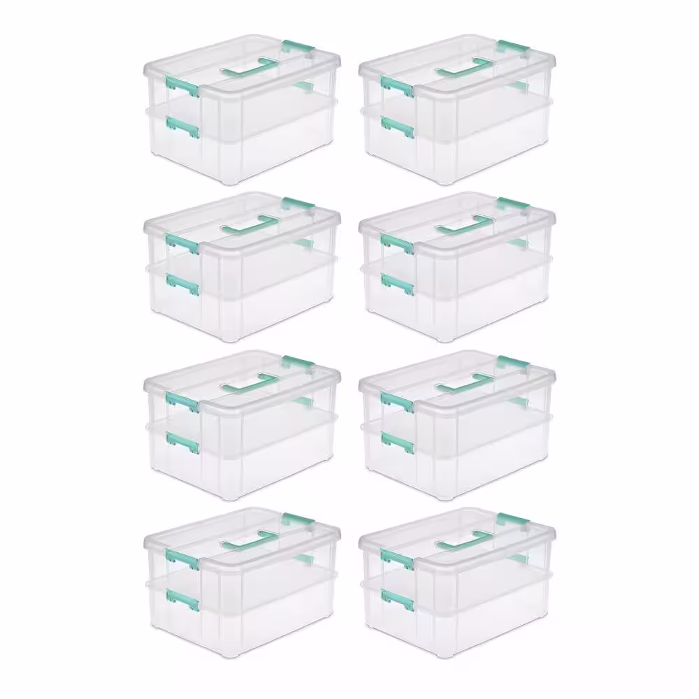 Sterilite Convenient Home 15.5 qt. 2-Tier Layer Stack Carry Storage Box in Clear (8-Pack)